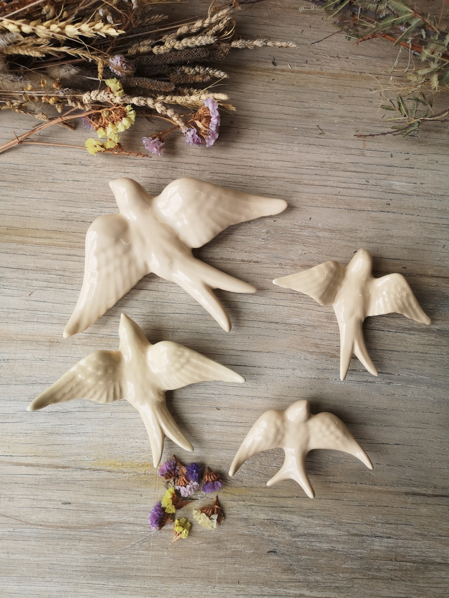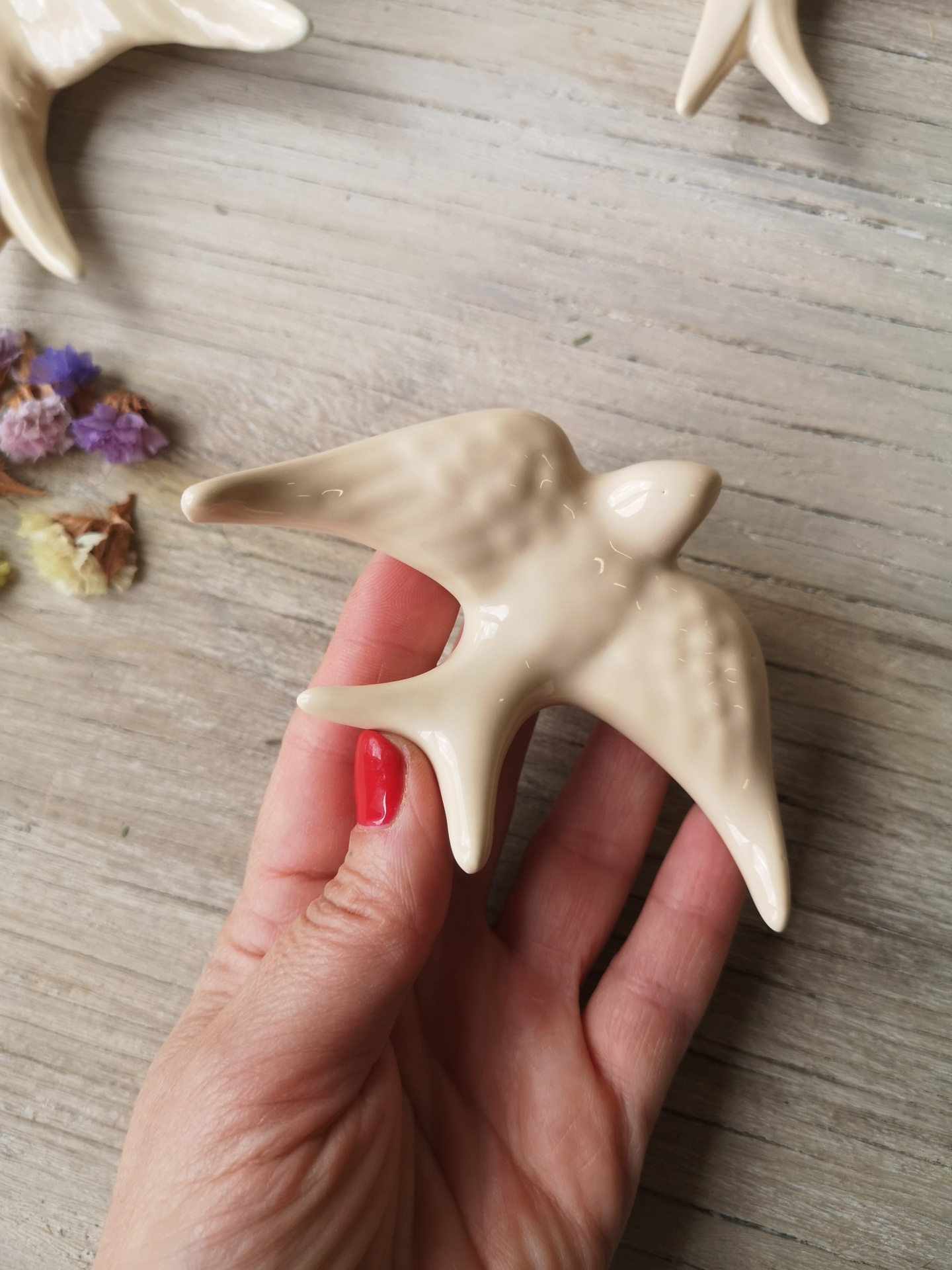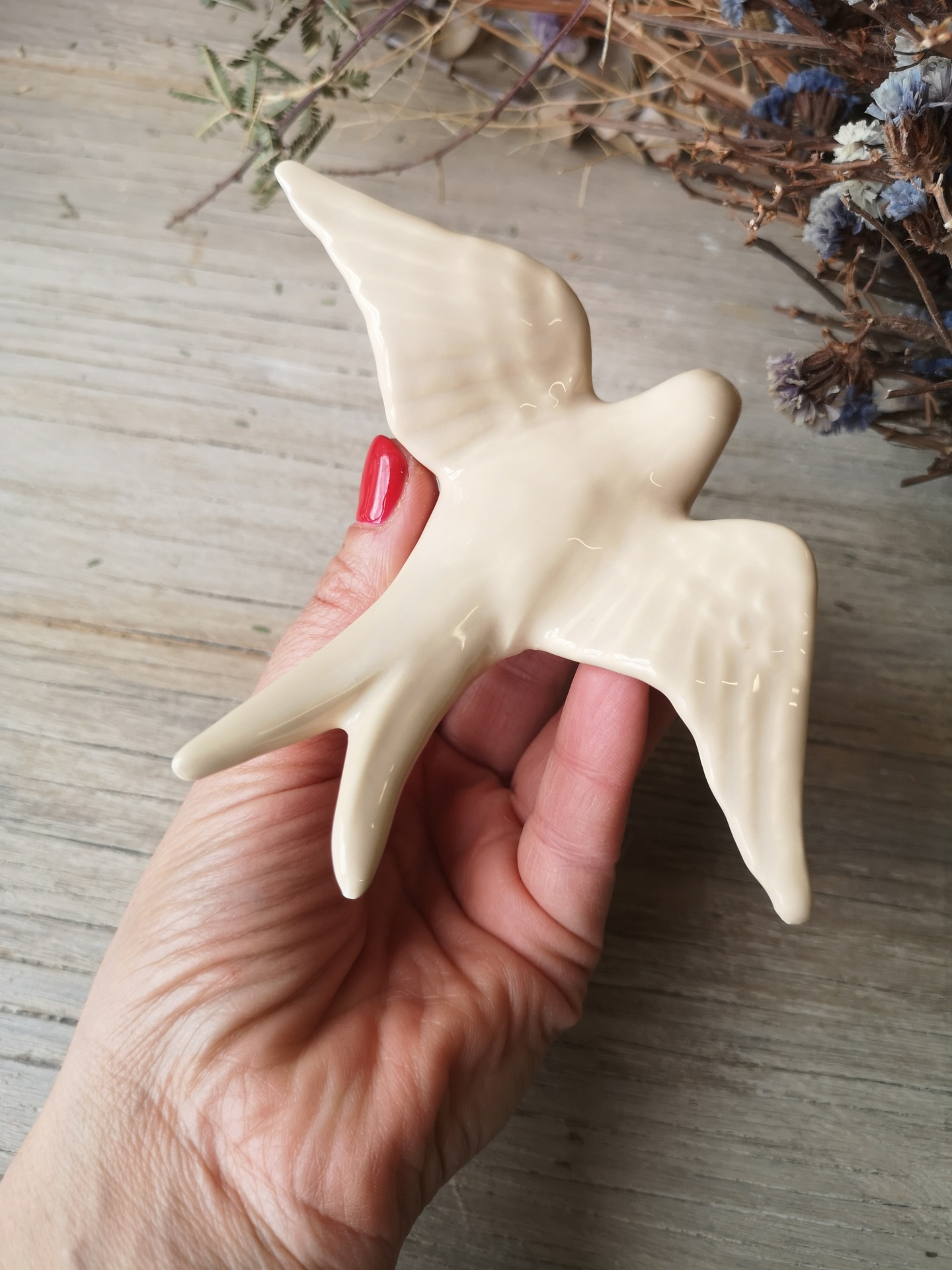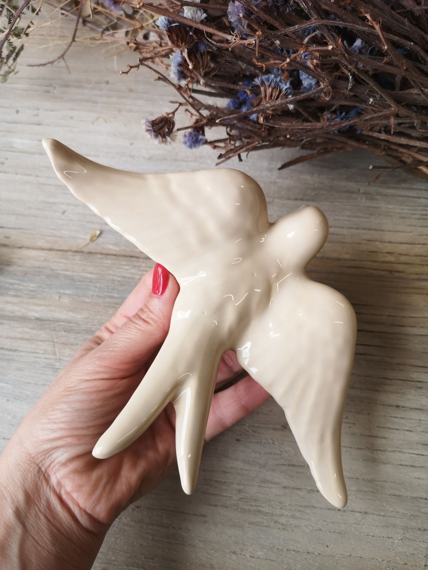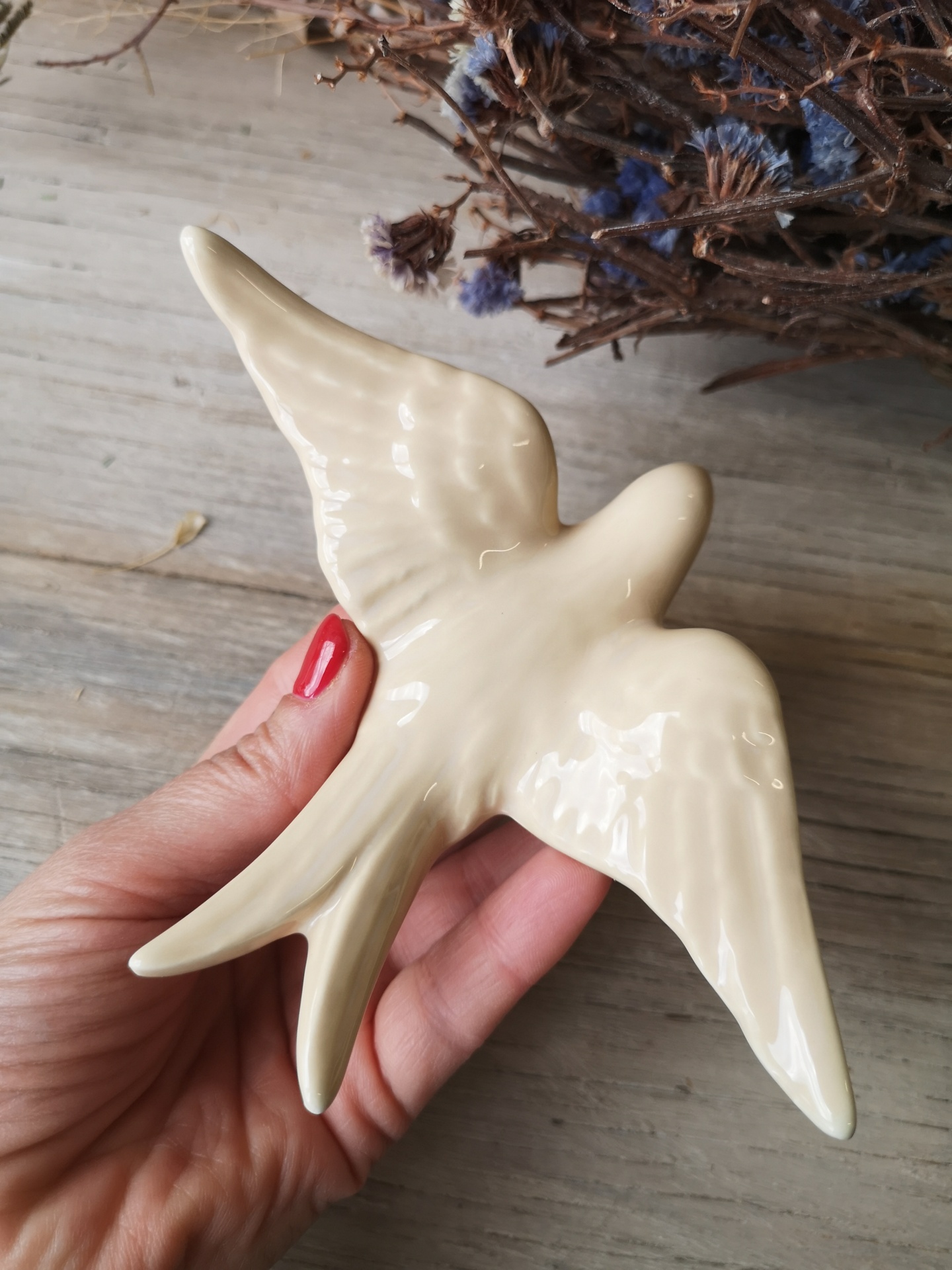 Andorinha bege em cerâmica.