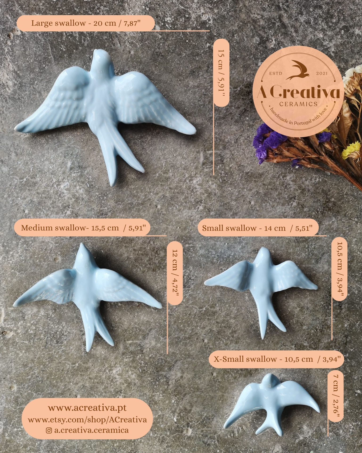 Andorinhas Tamanho XS - 10,5 cm X 7 cm / 3,94'' x 2,76''