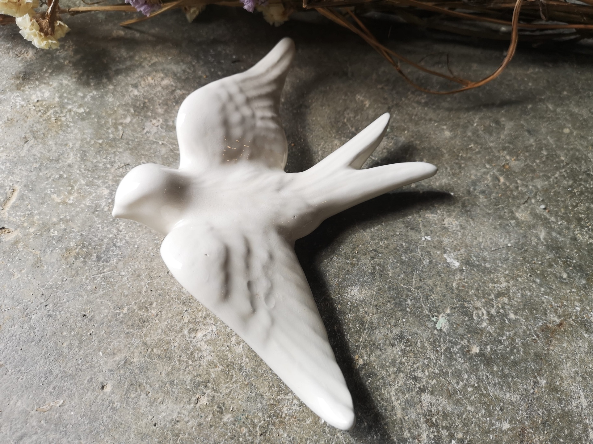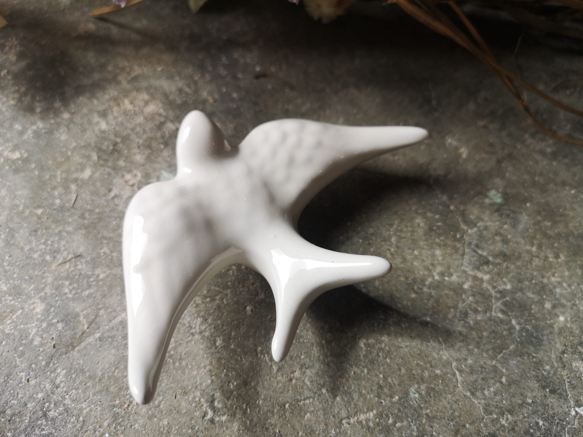 Andorinha branca em cerâmica