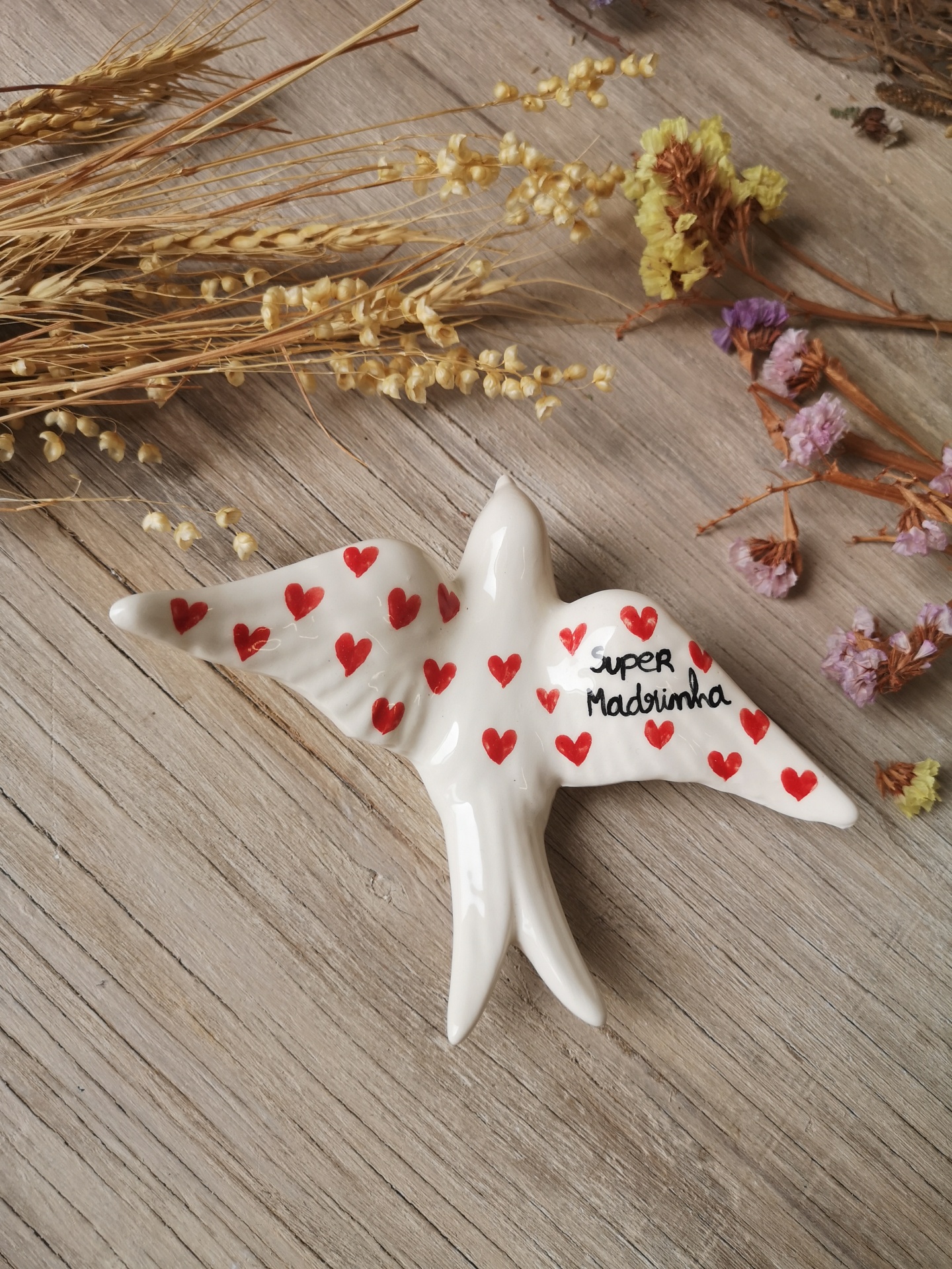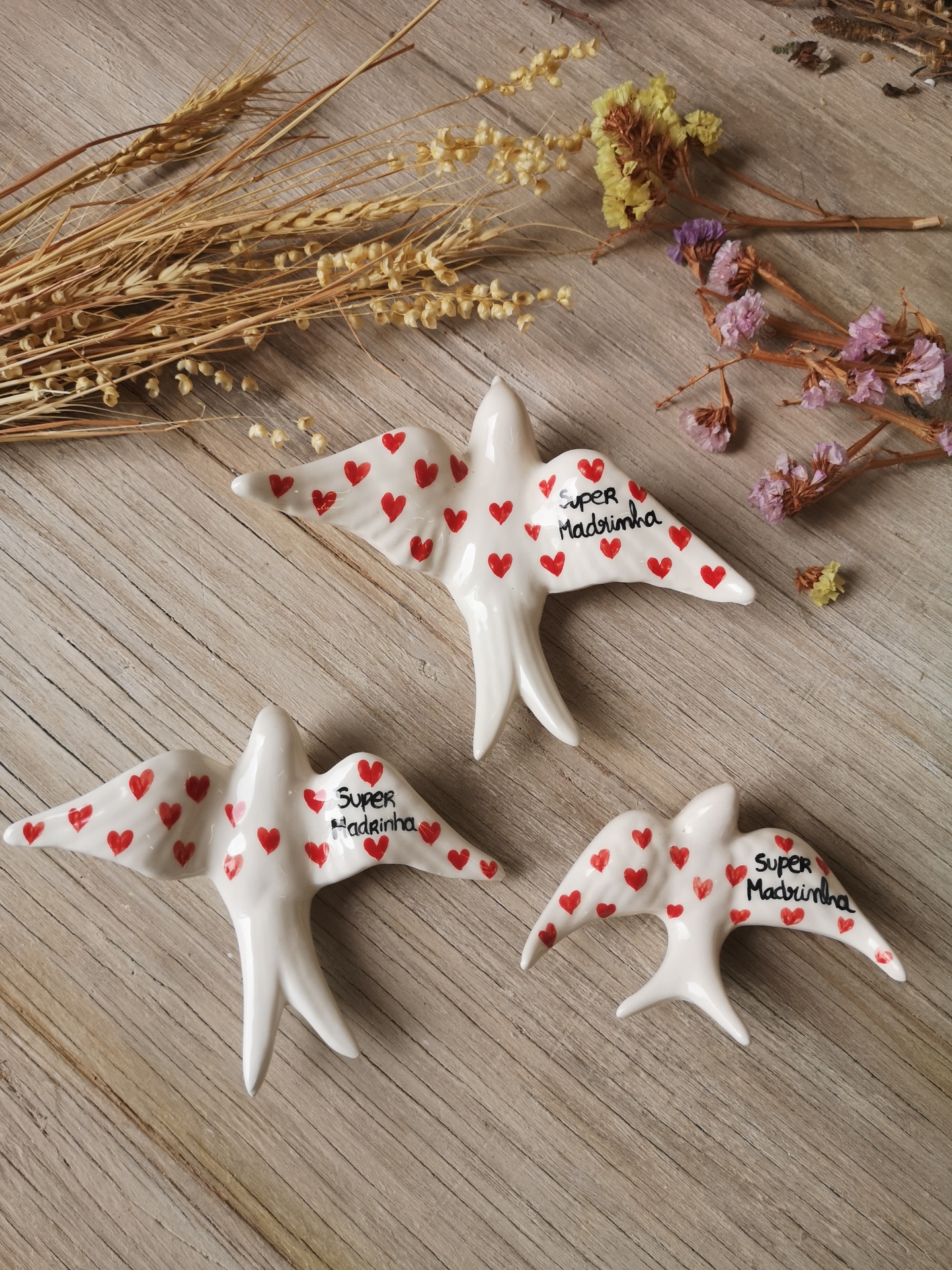 Andorinha Coração em cerâmica, pintada à mão ( a que aparece sozinha na imagem é tamanho M )