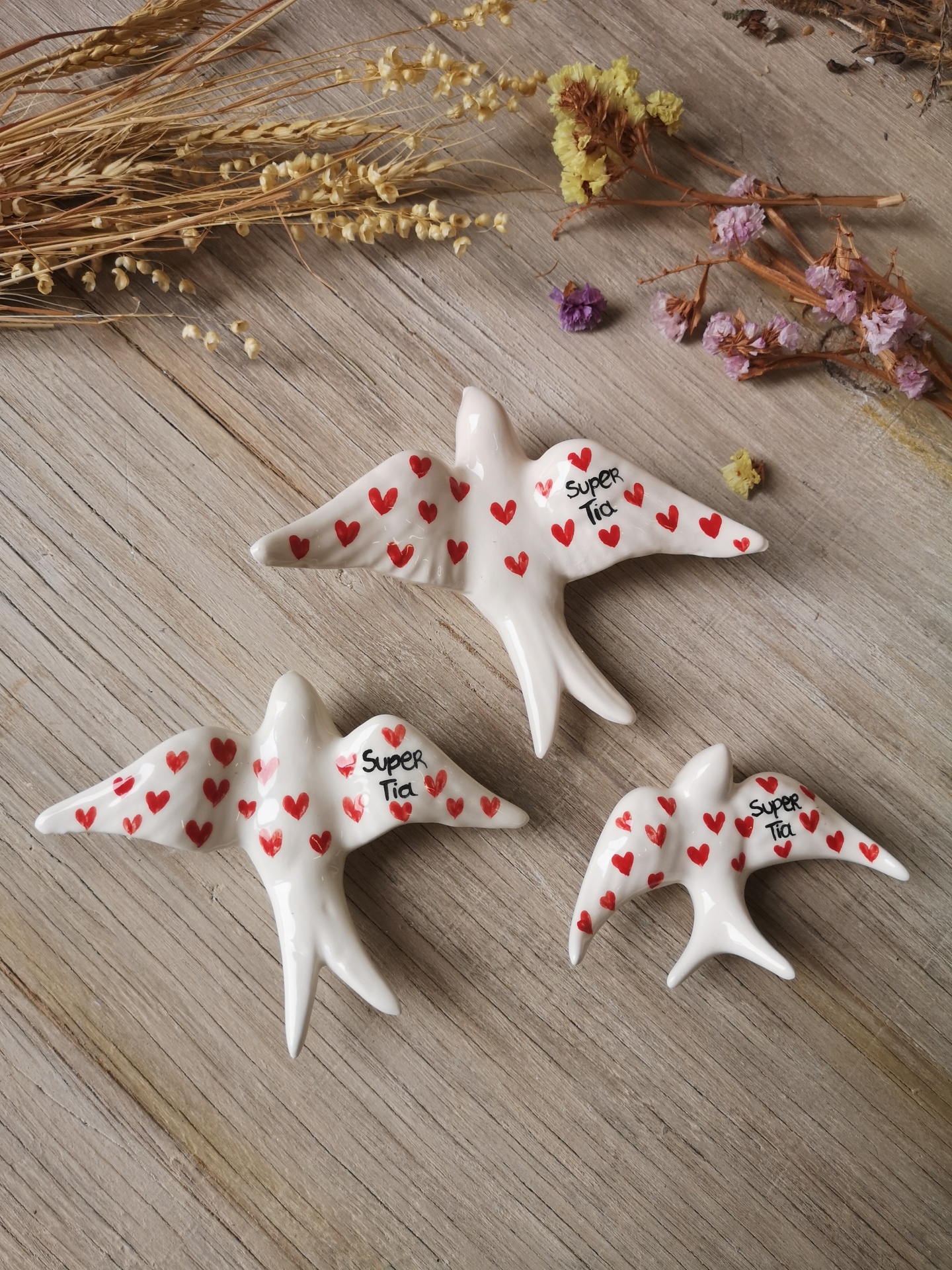 Andorinha Coração em cerâmica, pintada à mão ( a que aparece sozinha na imagem é tamanho M )