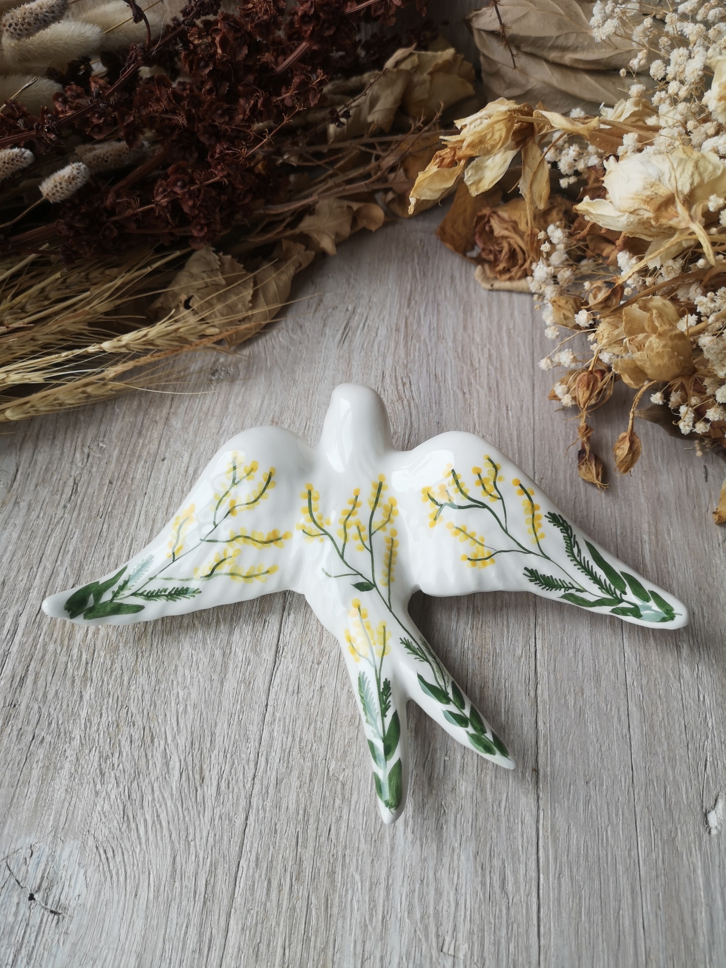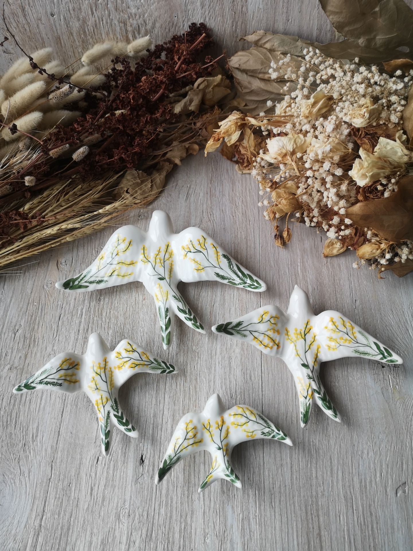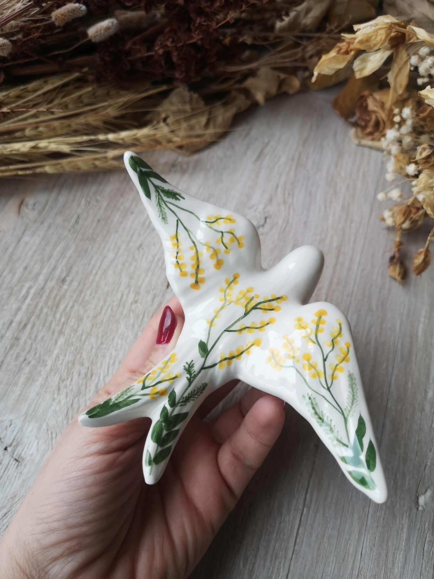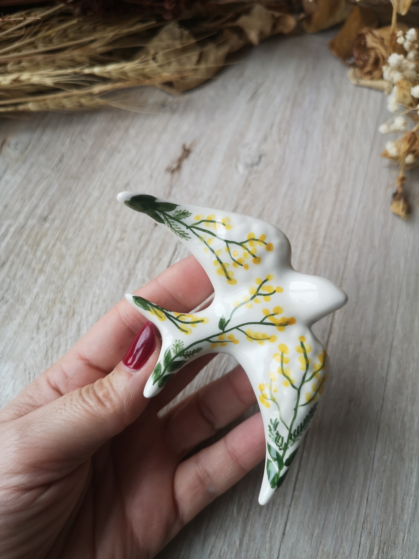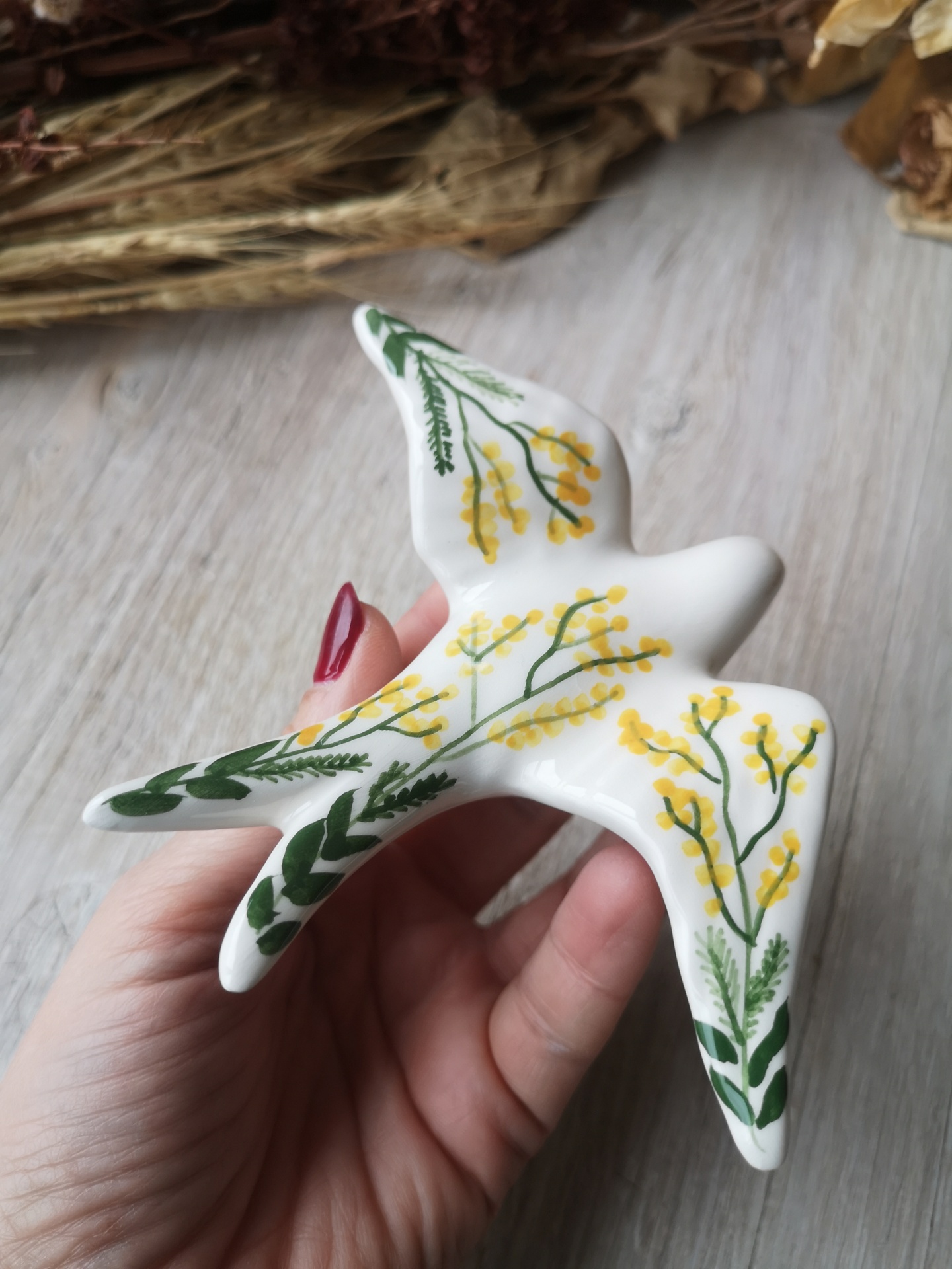 Andorinha em cerâmica, pintada à mão , padrão Alfazema amarela