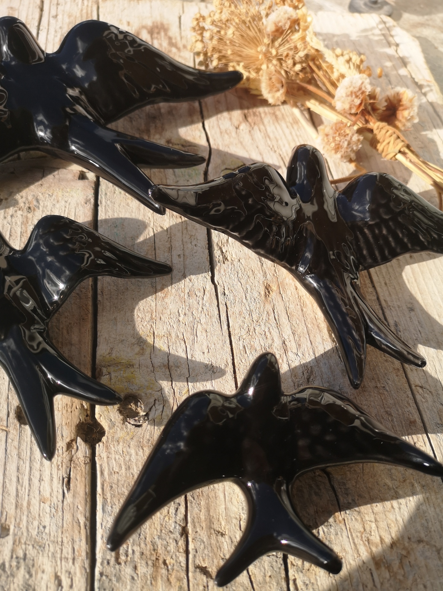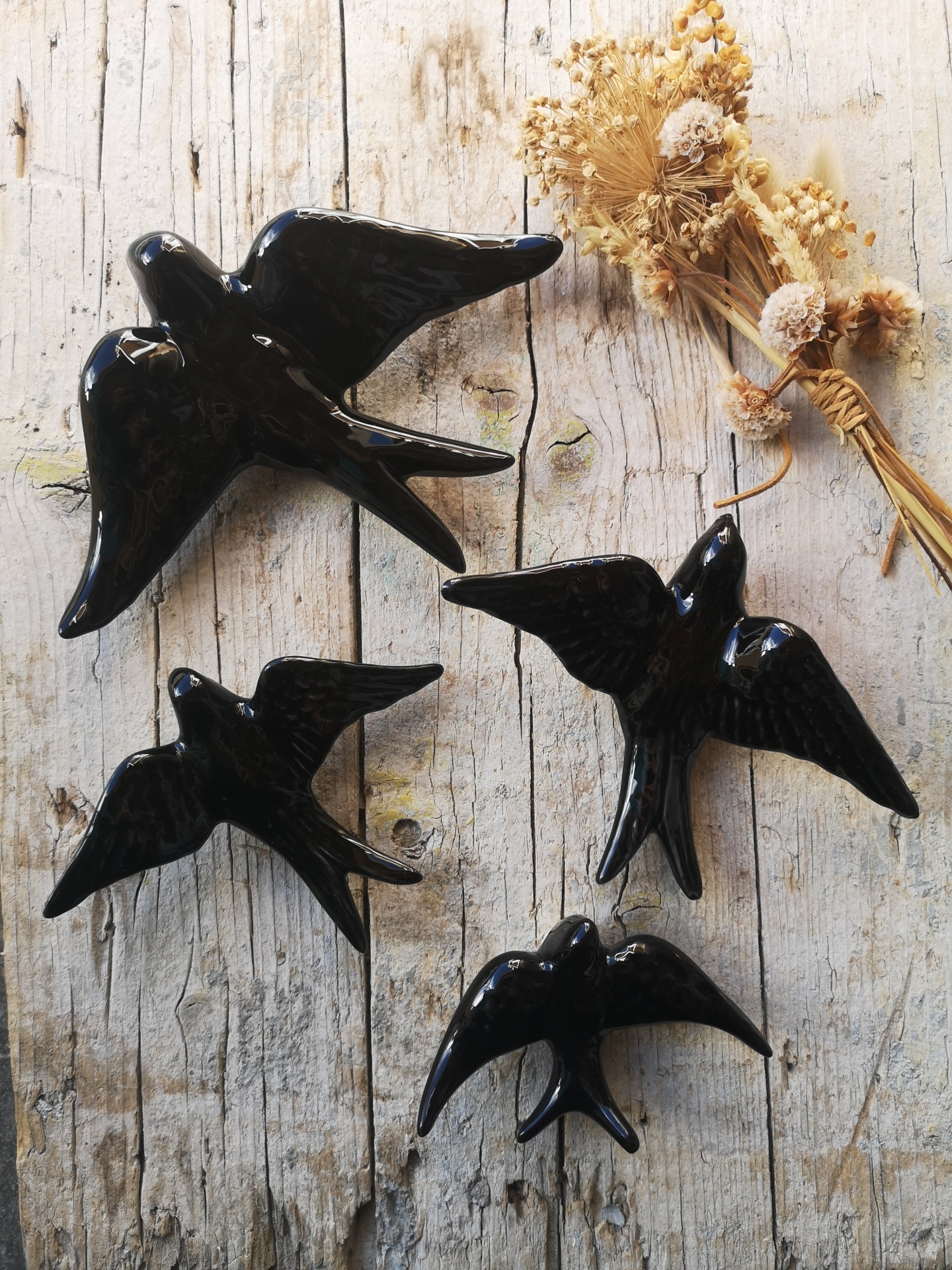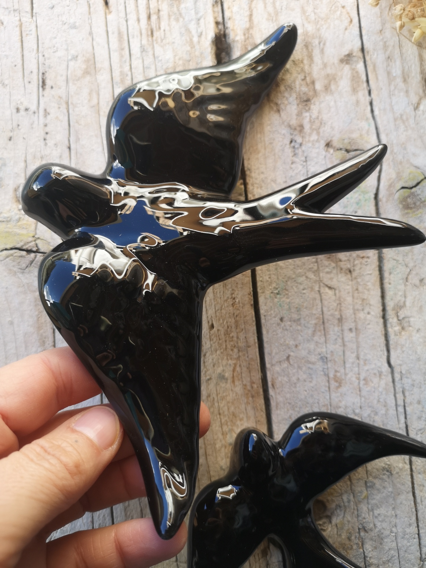Andorinha preta em cerâmica.