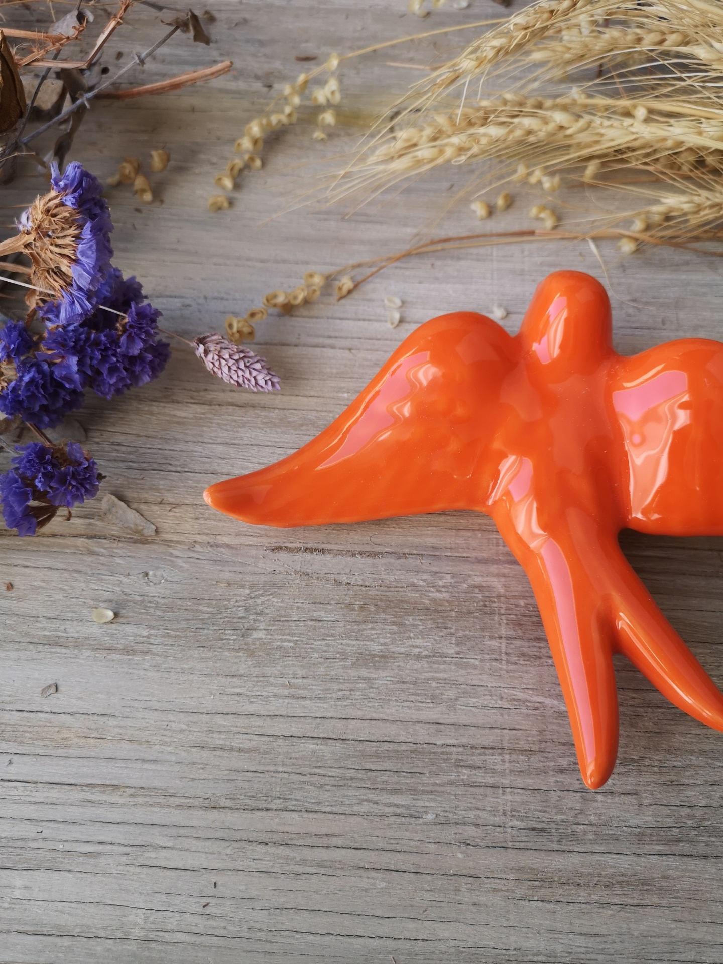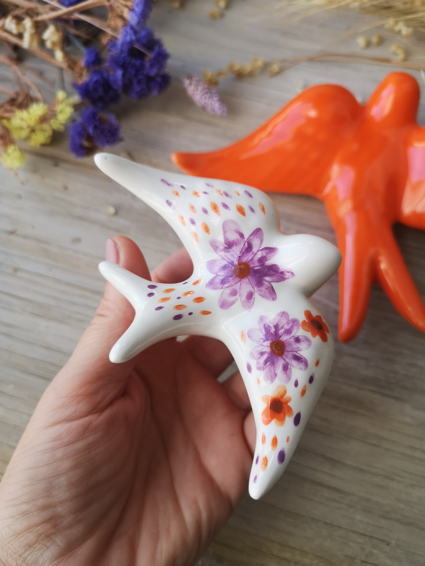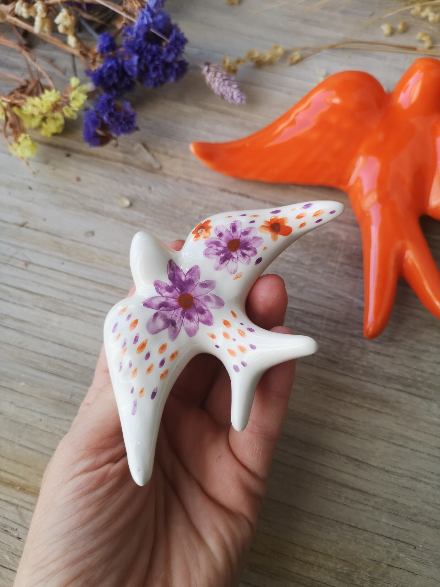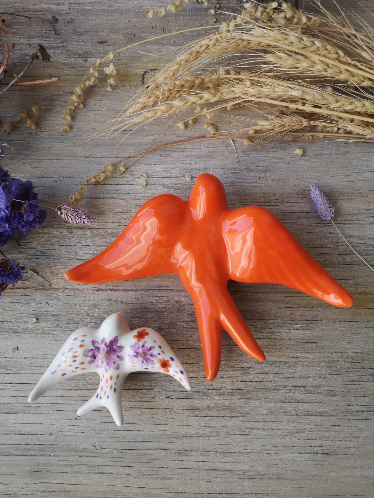 Conjunto de 2 andorinhas em cerâmica, Tamanho L Laranja , Tamanho XS padrão floral