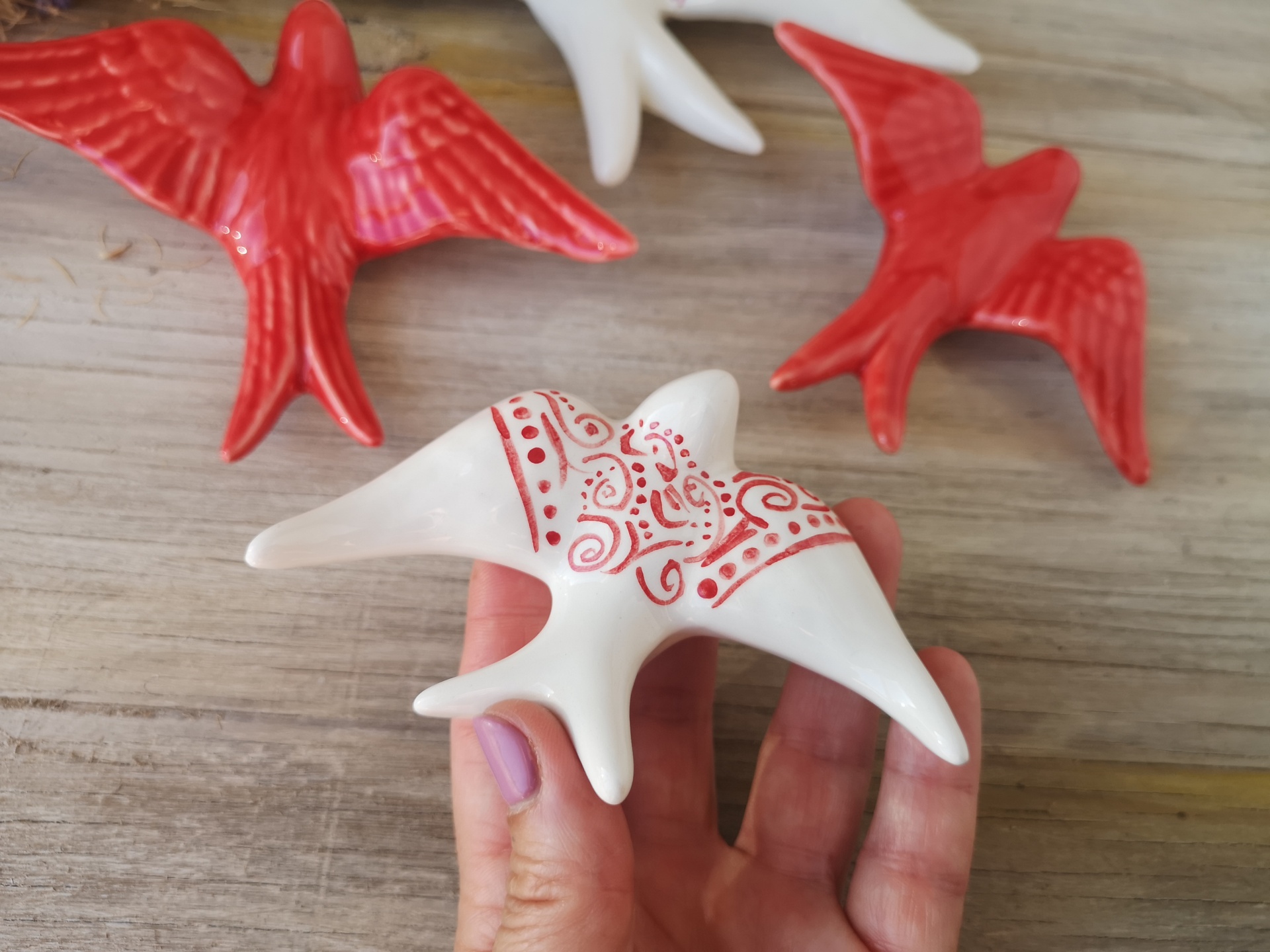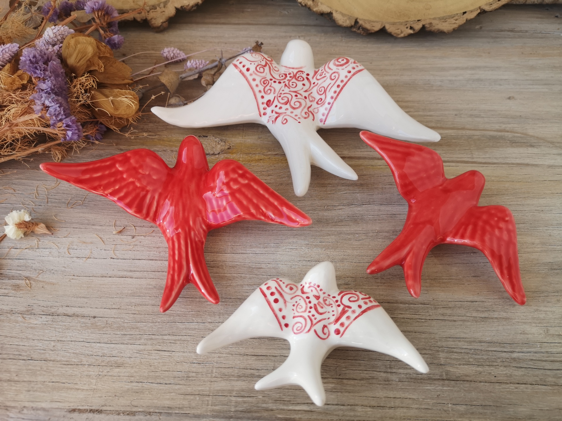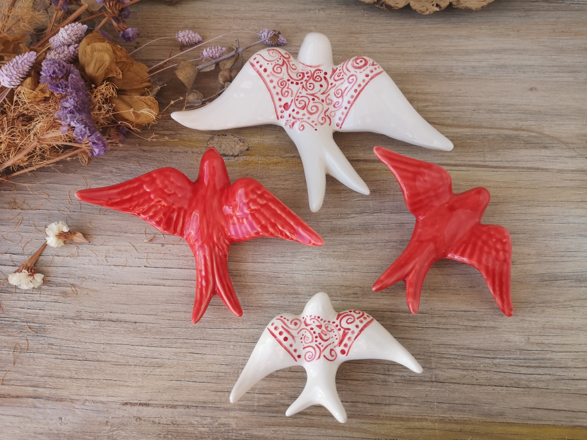 Conjunto de 4 andorinhas em cerâmica.