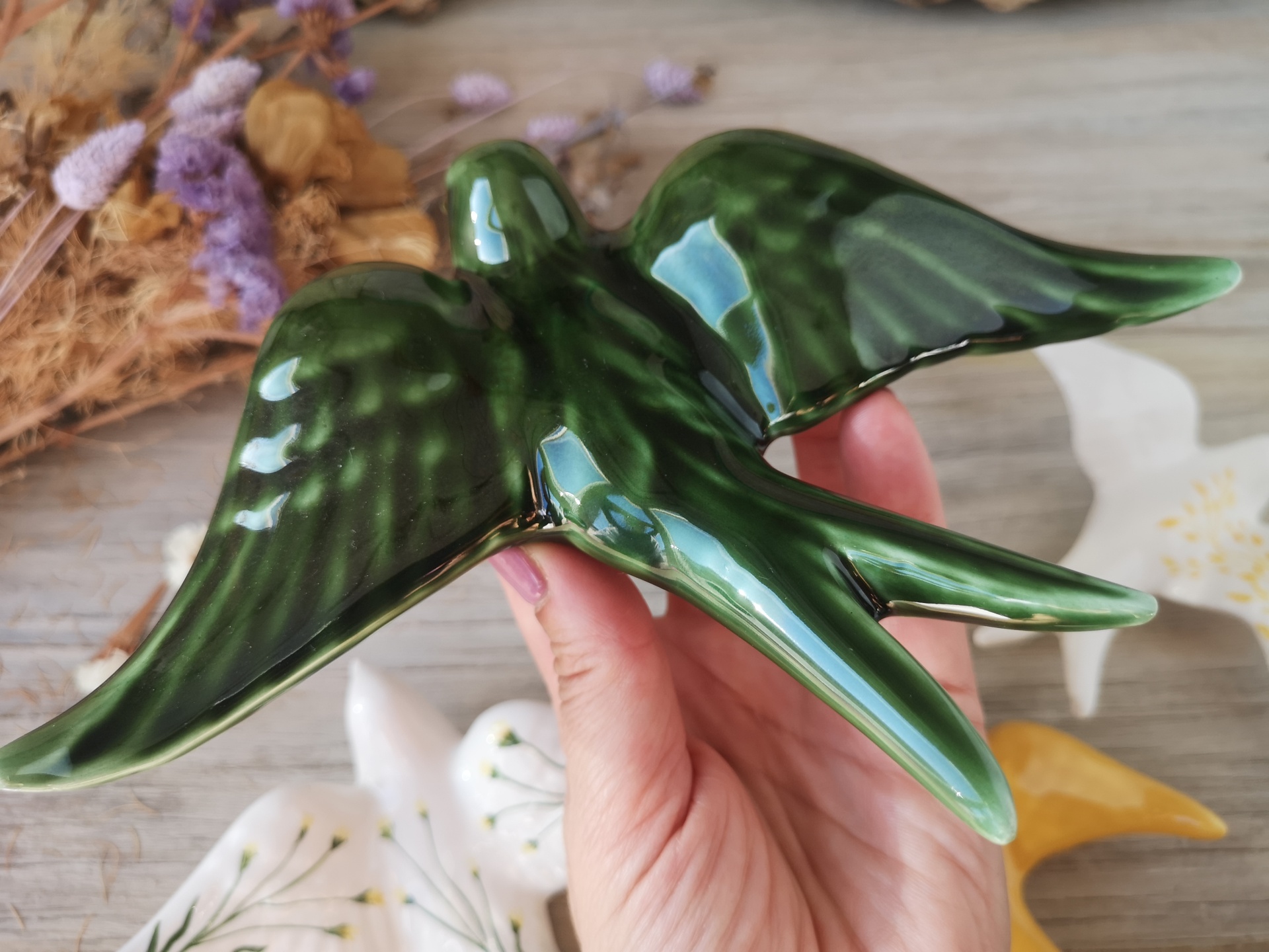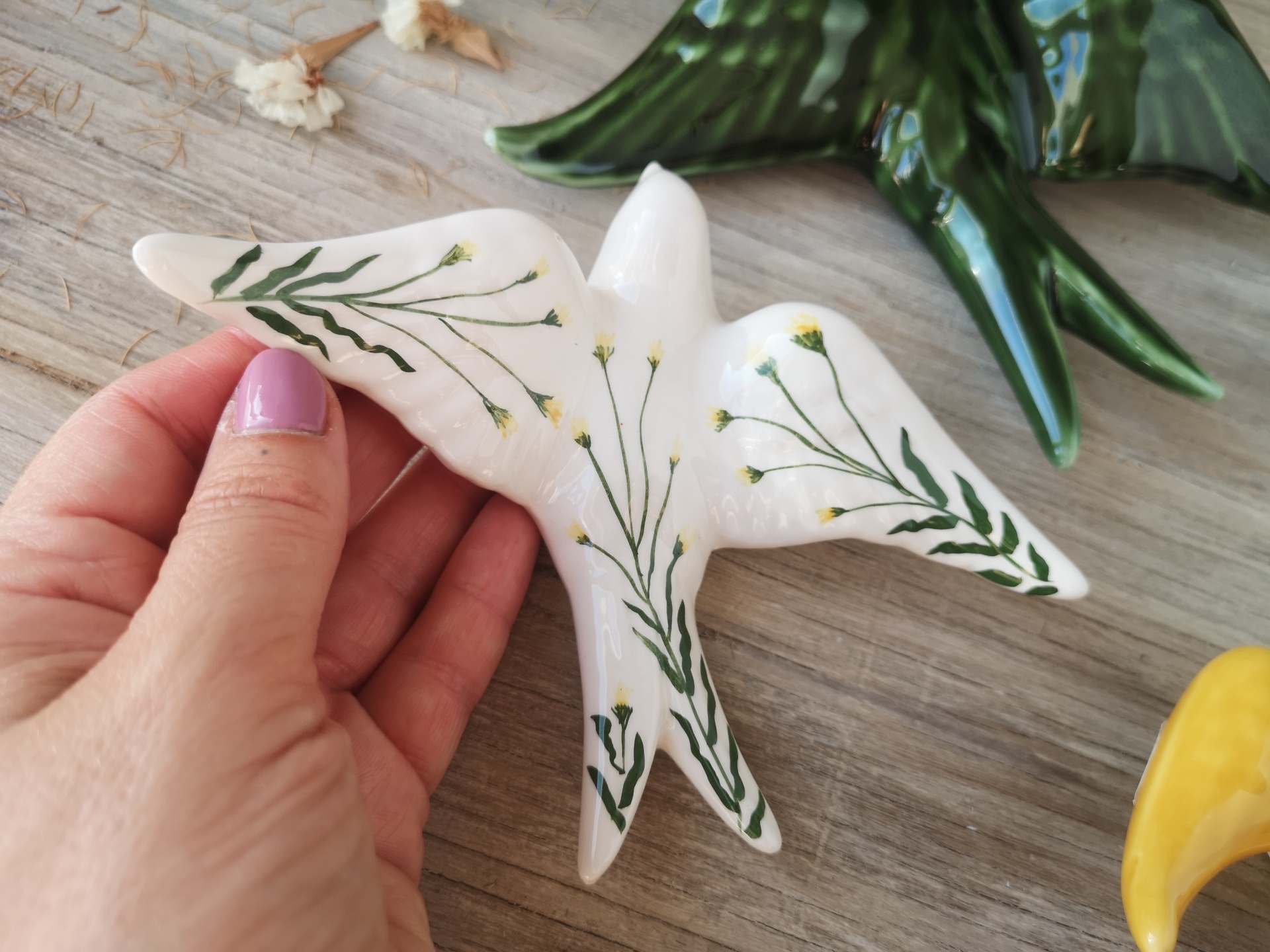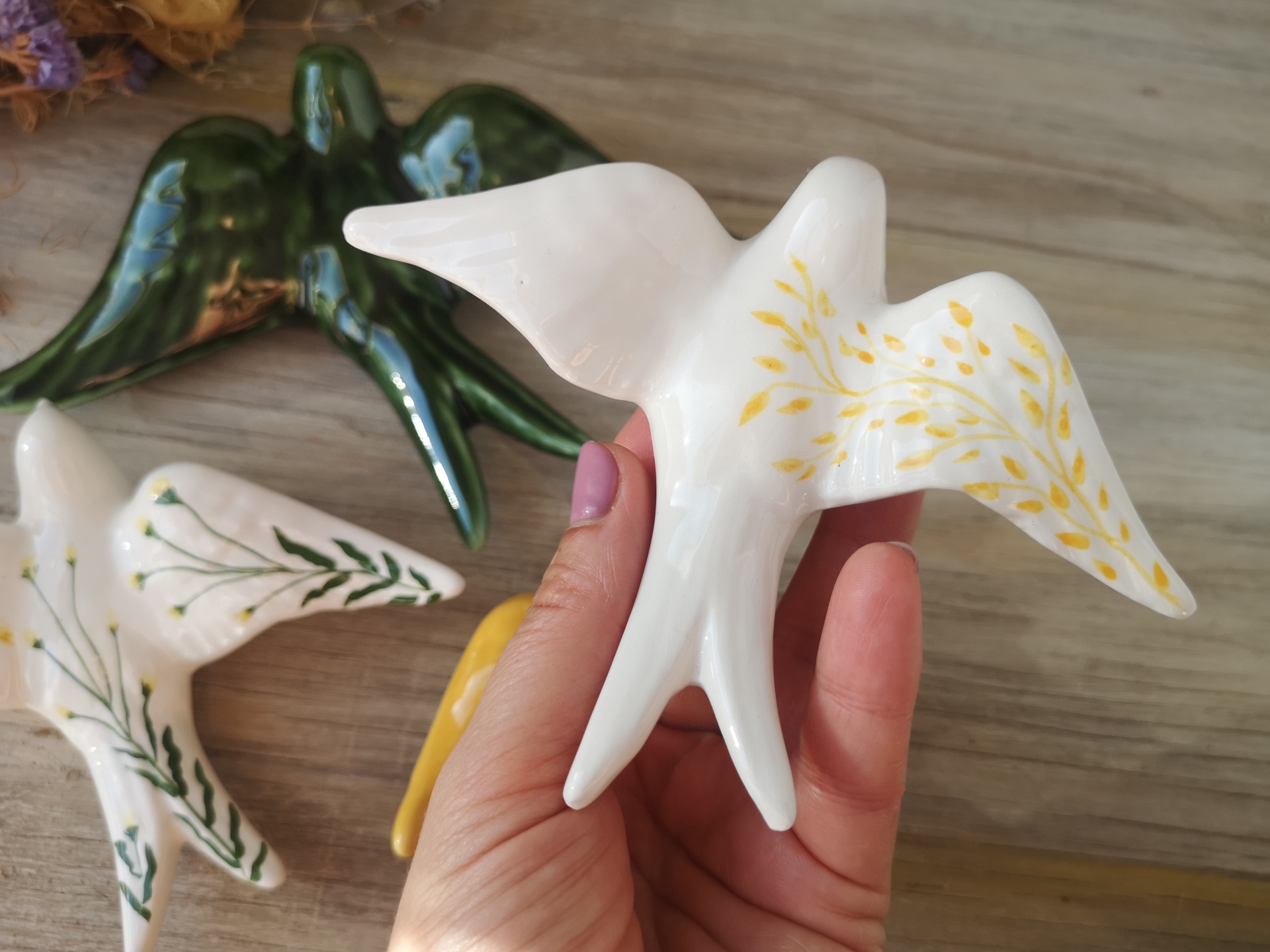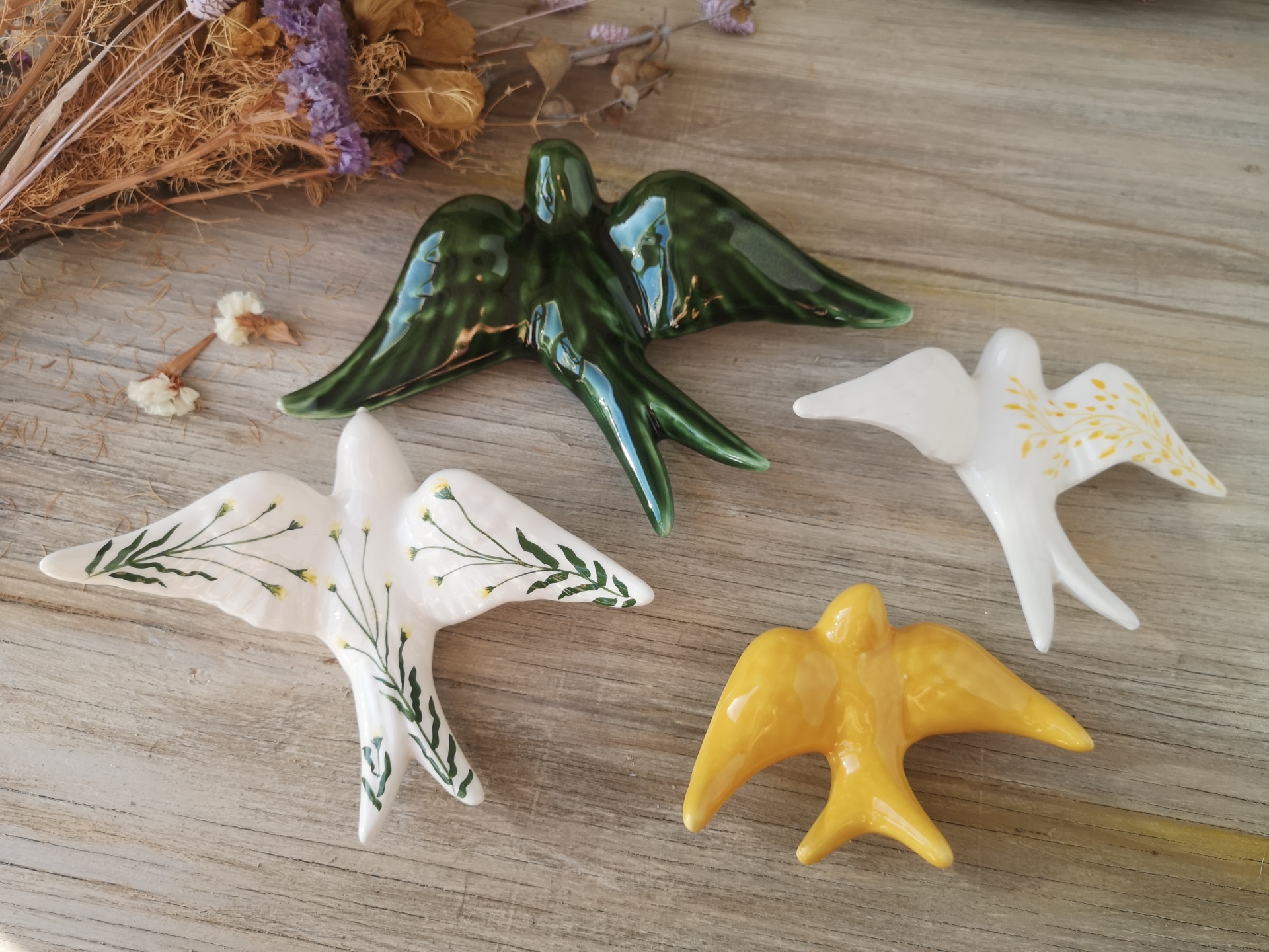 Conjunto de 4 andorinhas em cerâmica.