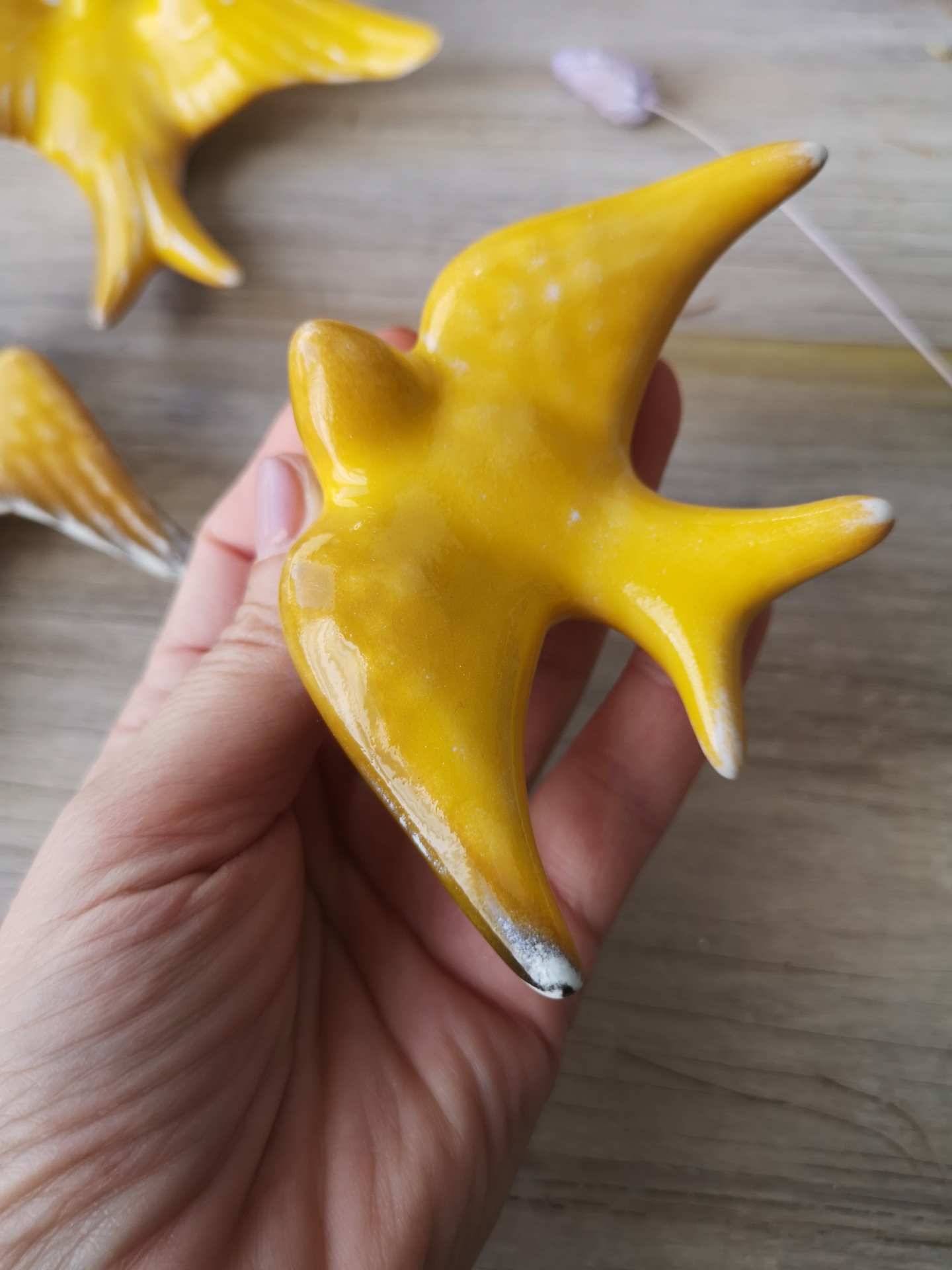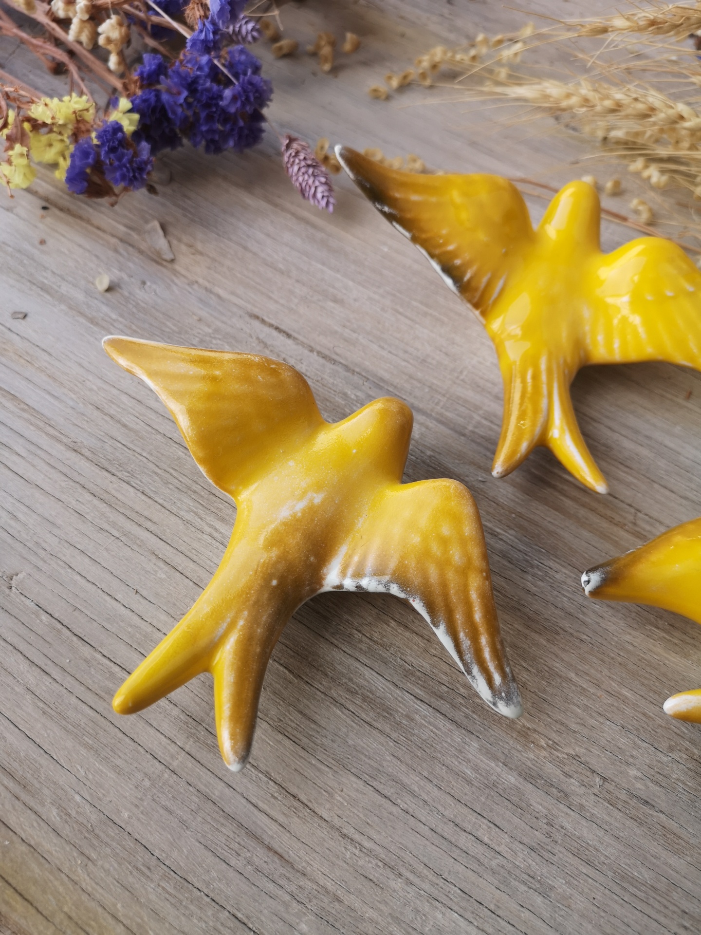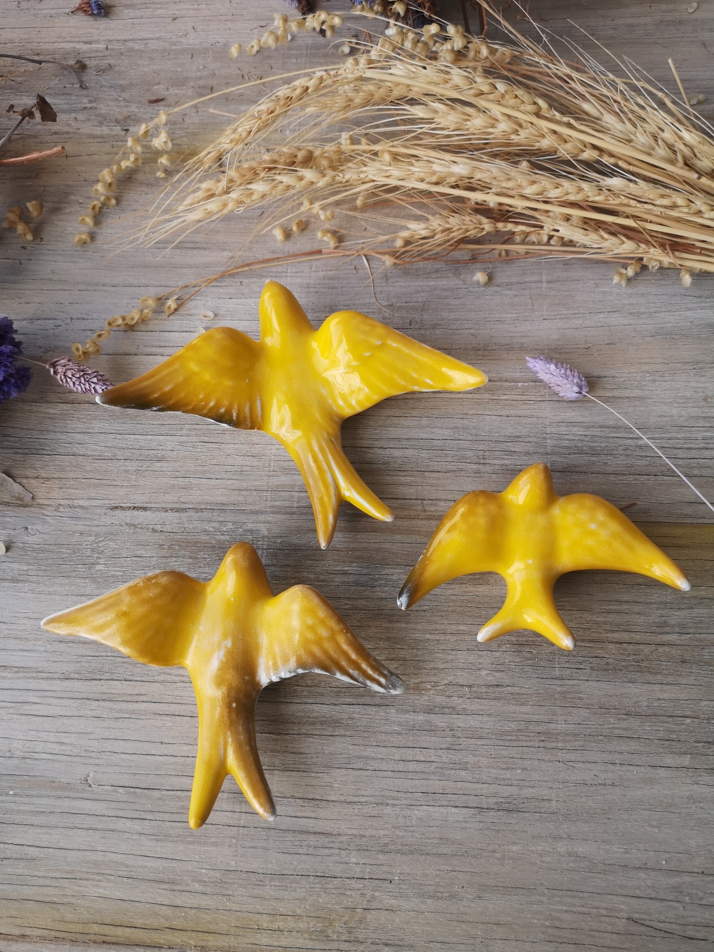 Conjunto de 3 andorinhas em cerâmica, cor amarelo