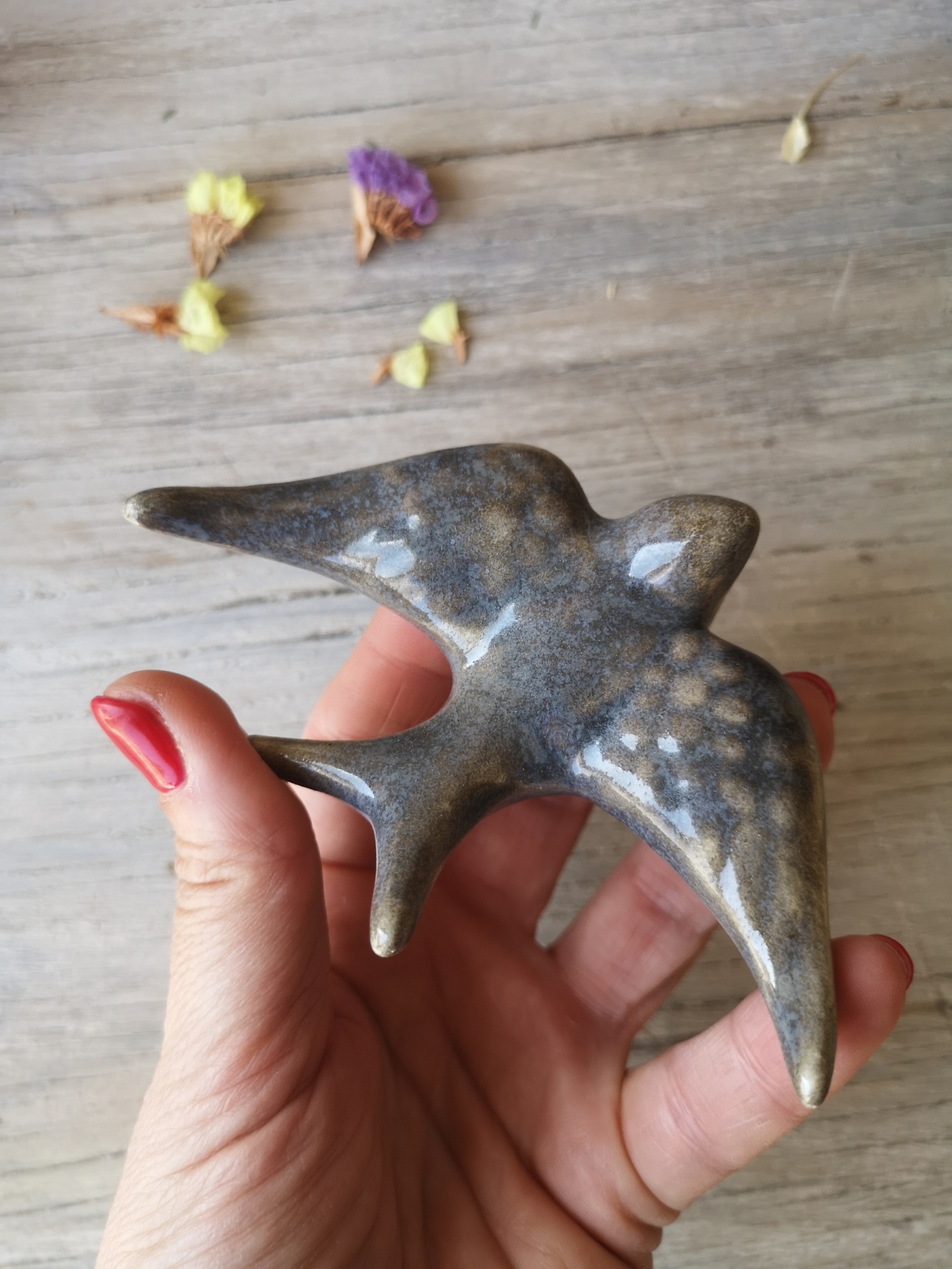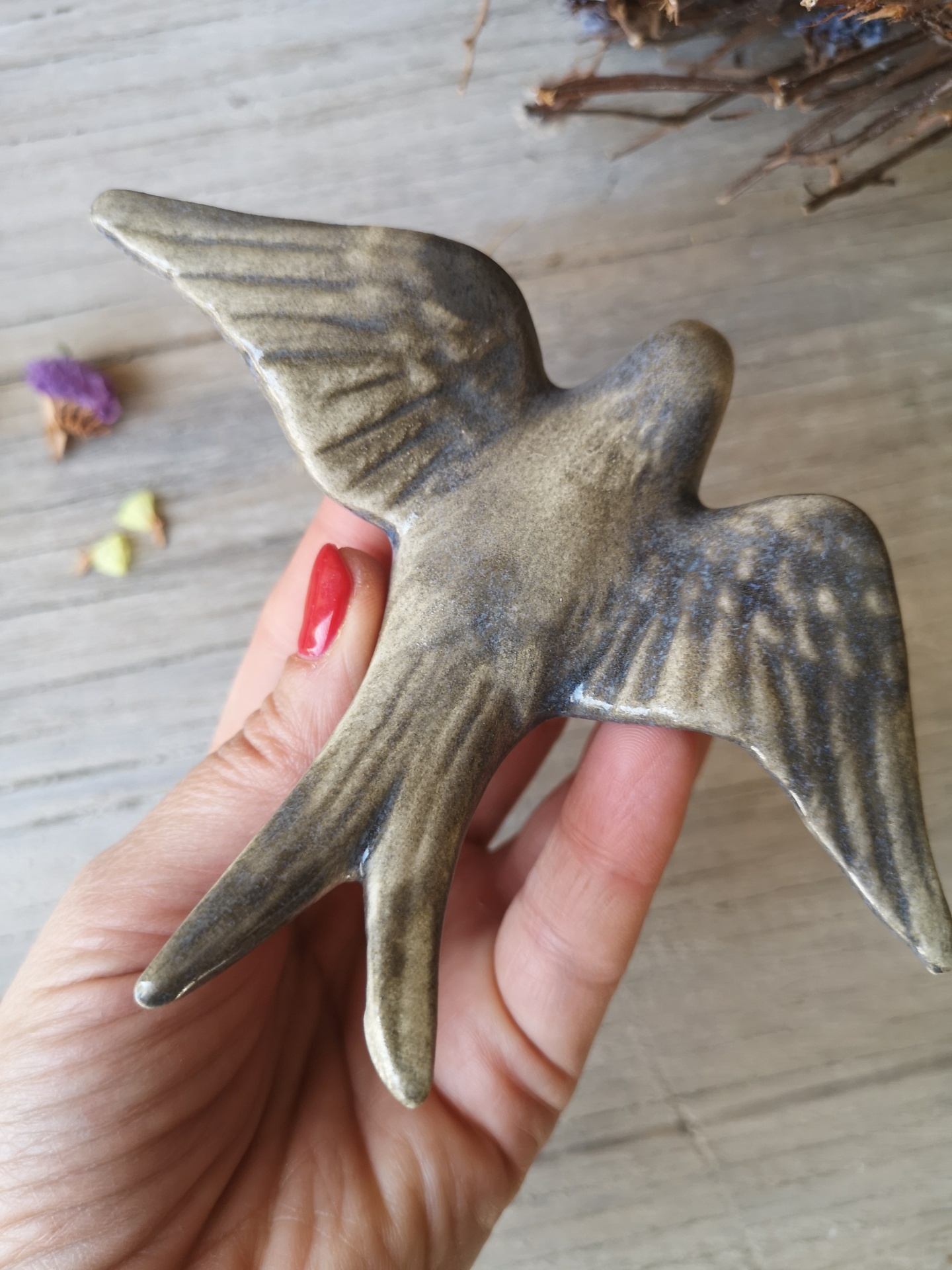 Conjunto de 3 andorinhas em cerâmica, cor Cinza