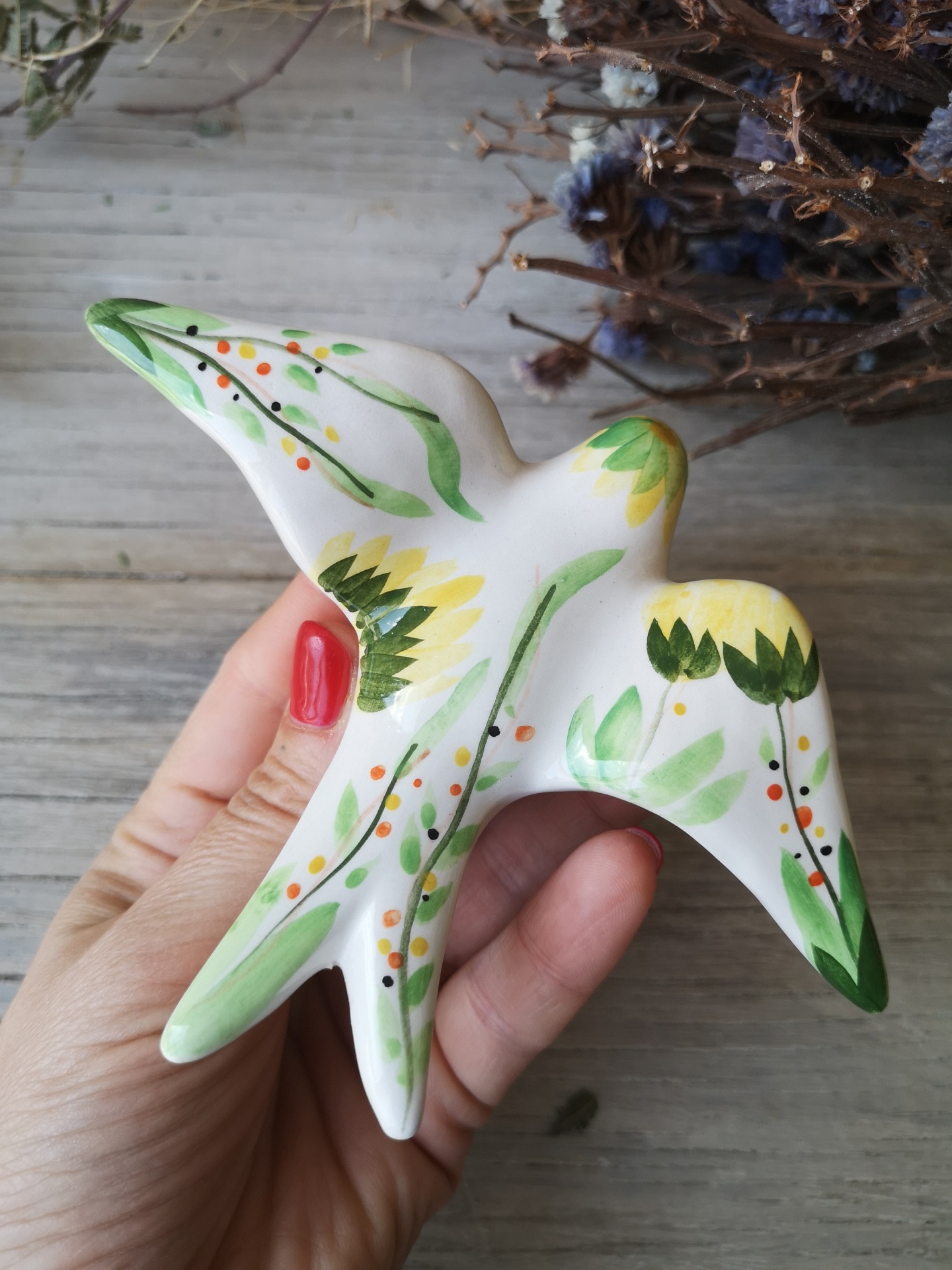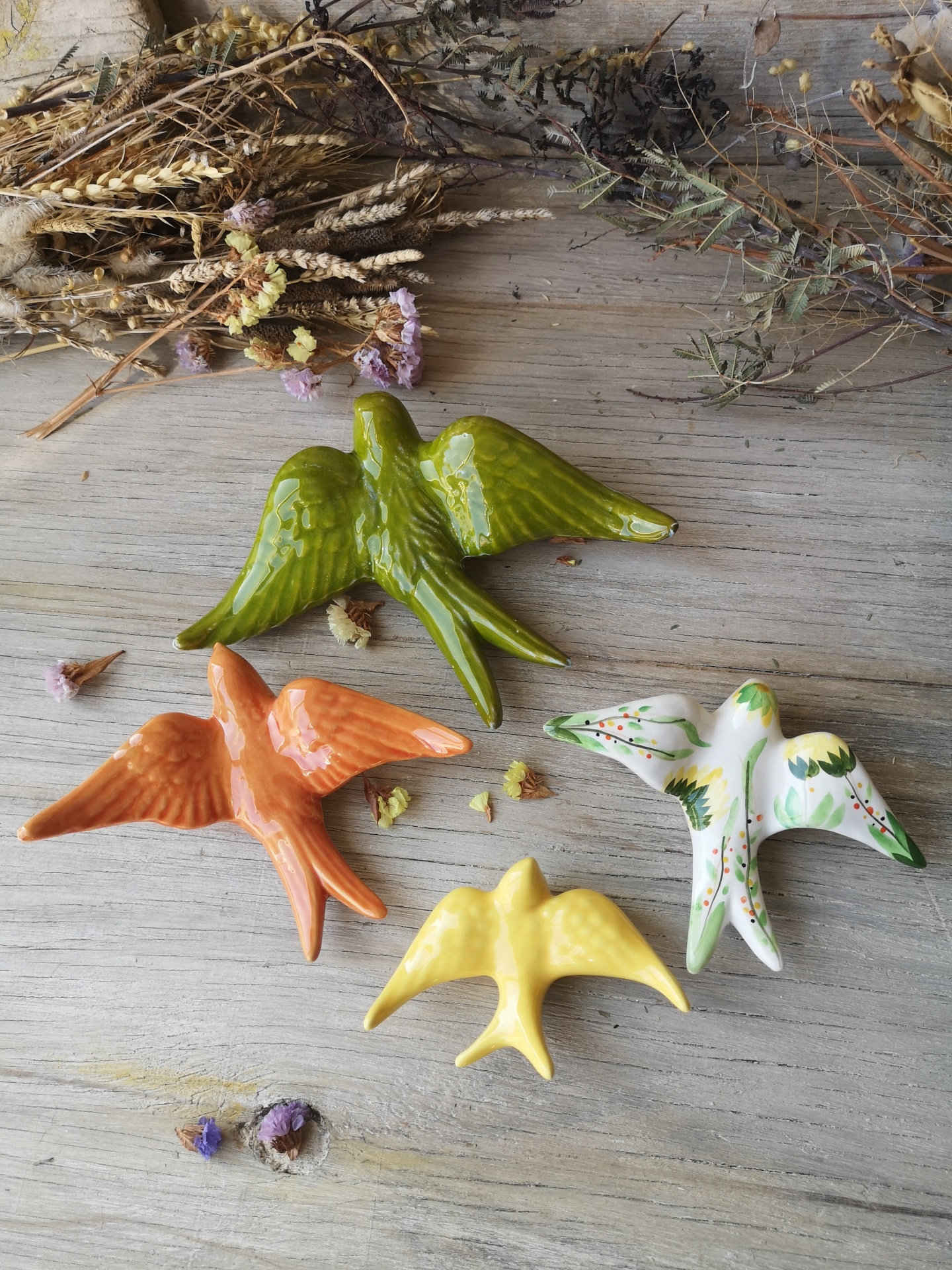 Conjunto de 4 andorinhas em cerâmica.