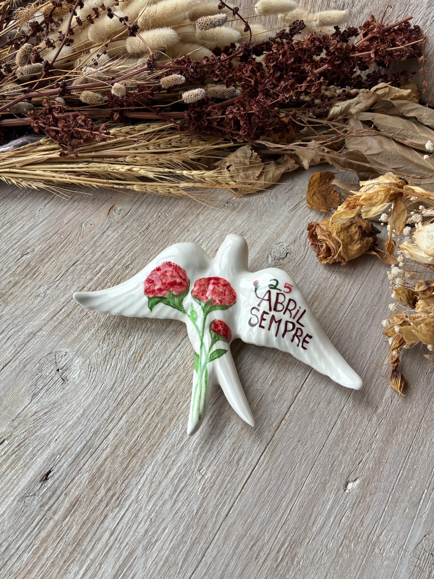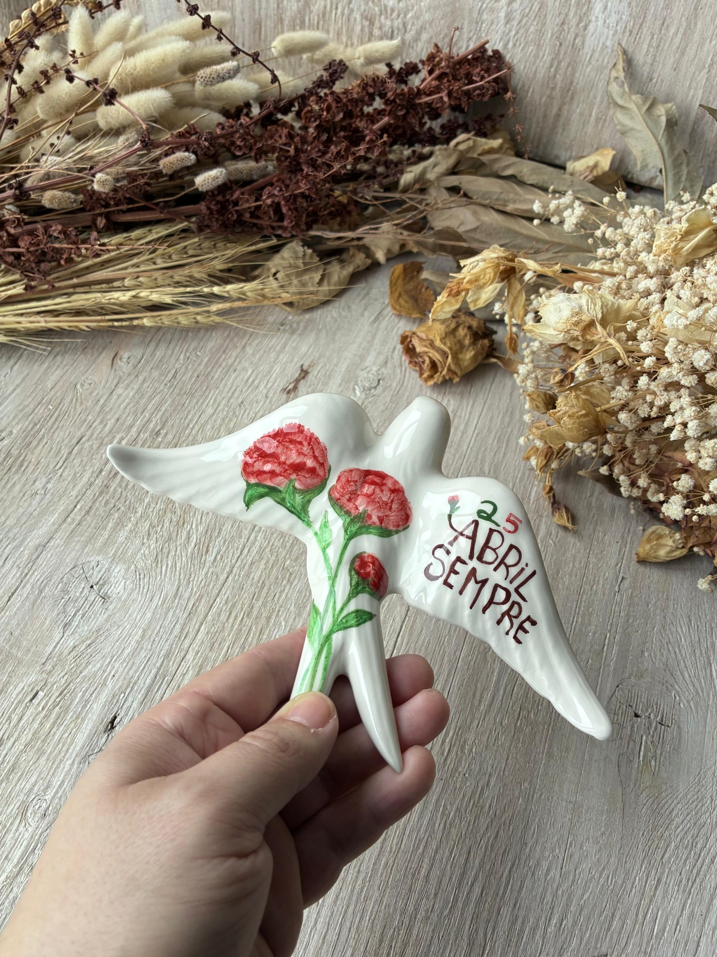Andorinha ou pregadeira em cerâmica, pintada à mão, padrão Abril.