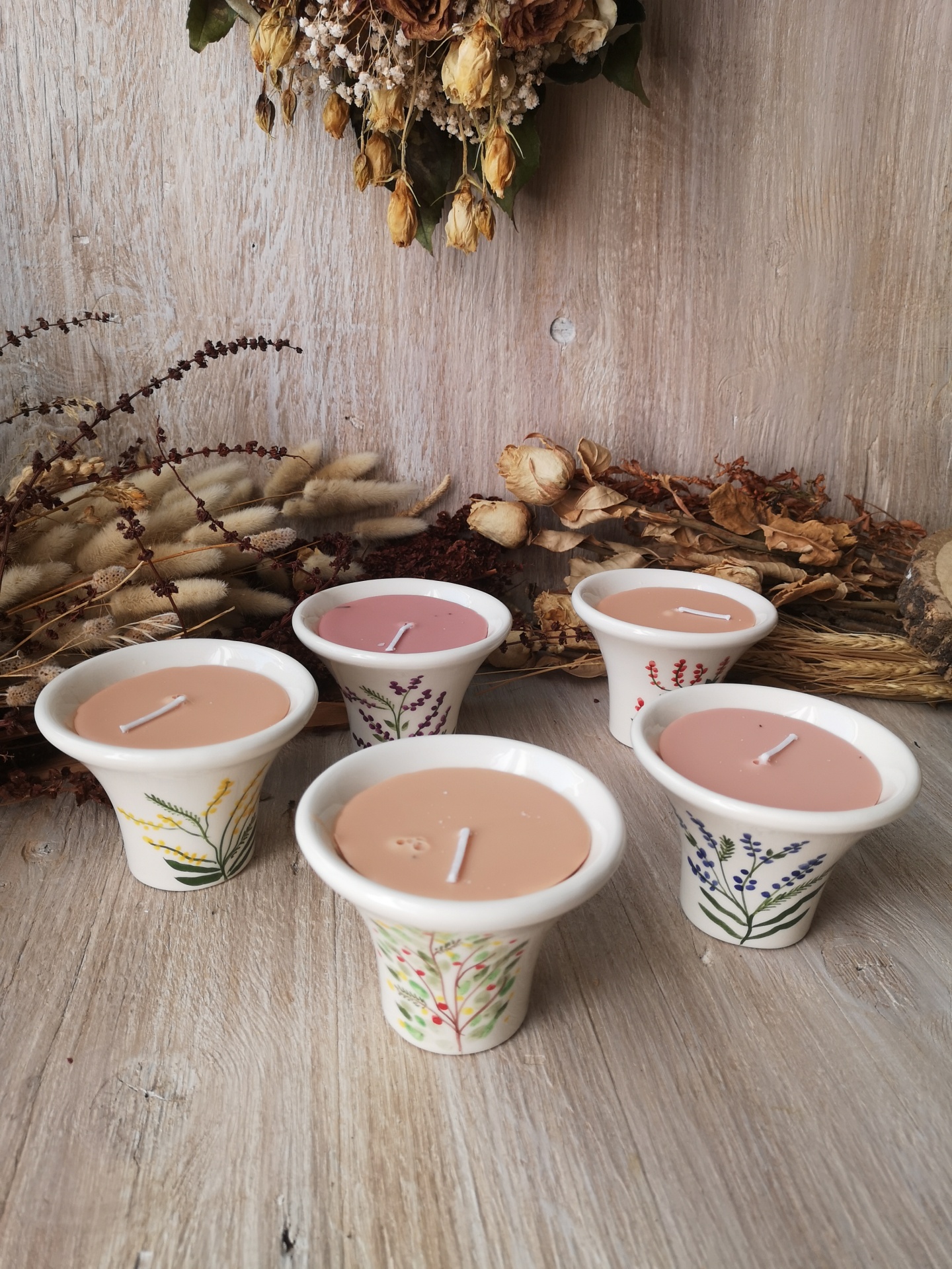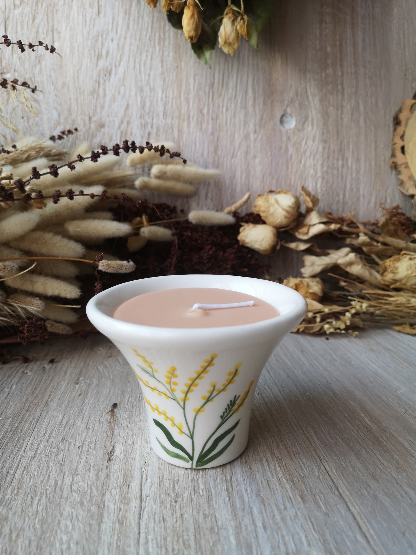 Vela de cerâmica, cera de abelha e soja - padrão Flor Amarela